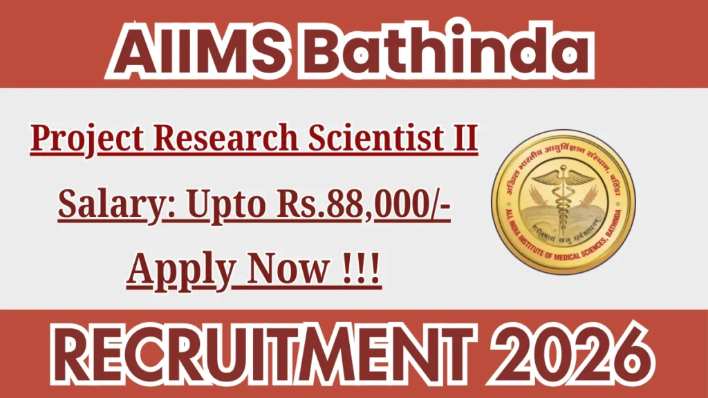 All India Institute of Medical Sciences Bathinda (AIIMS Bathinda) has released an official notification for the recruitment of 01 Project Research Scientist II Posts. Interested and eligible candidates can apply Online through the official AIIMS Bathinda website. The last date to submit the application form is 28 December 2025. In this article, you’ll find the AIIMS Bathinda Project Research Scientist II Posts recruitment details, including eligibility criteria, age limit, salary structure, selection process, application steps, and direct links to the official notification and Online application form.