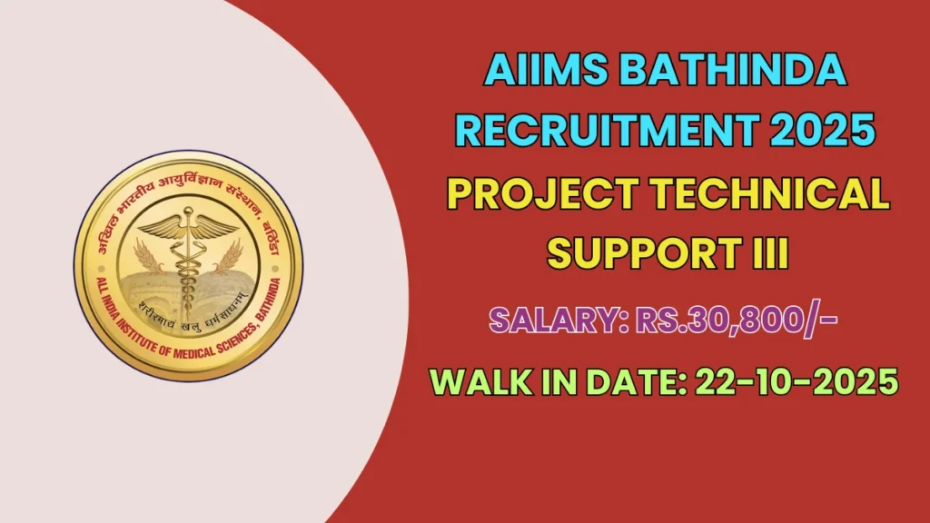 AIIMS Bathinda Project Technical Support III Recruitment 2025 – Walk in for 01 Posts