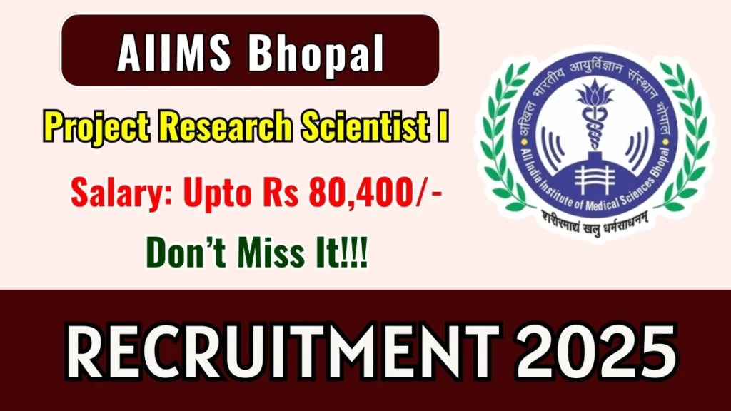 All India Institute of Medical Sciences Bhopal (AIIMS Bhopal) has released an official notification for the recruitment of 01 Project Research Scientist I Posts. Interested and eligible candidates can apply Online through the official AIIMS Bhopal website. The last date to submit the application form is 26-10-2025. In this article, you’ll find the AIIMS Bhopal Project Research Scientist I Posts recruitment details, including eligibility criteria, age limit, salary structure, selection process, application steps, and direct links to the official notification and Online application form.