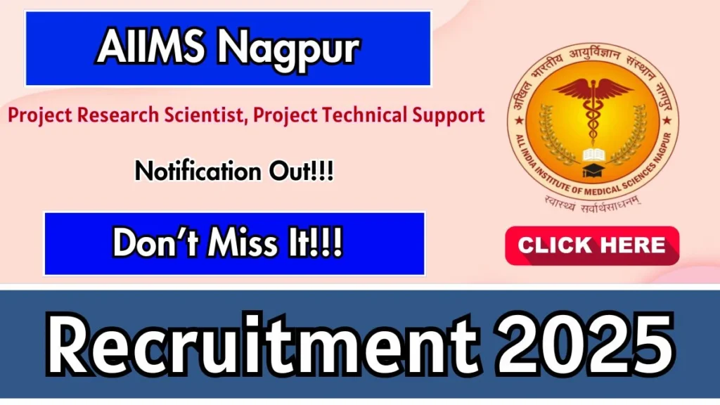 All India Institute of Medical Sciences Nagpur (AIIMS Nagpur)  has released an official notification for the recruitment of 02 Project Research Scientist, Project Technical Support Posts. Interested and eligible candidates can apply Online through the official AIIMS Nagpur website. The last date to submit the application form is 31-12-2025. In this article, you’ll find the AIIMS Nagpur Project Research Scientist, Project Technical Support Posts recruitment details, including eligibility criteria, age limit, salary structure, selection process, application steps, and direct links to the official notification and Online application form.