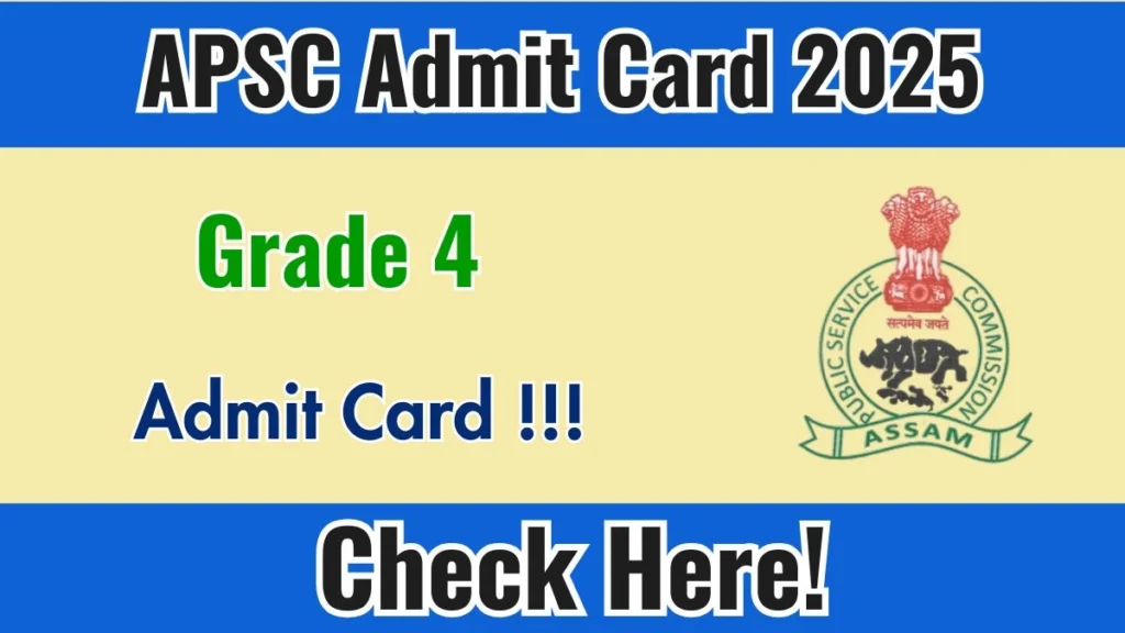 The Assam Public Service Commission (APSC) will release the APSC Grade 4 Admit Card 2025 on 23 December 2025. Candidates who have successfully applied for Grade 4 posts will be able to download their hall ticket from the official website apsc.nic.in. The screening test (OMR-based written examination) will be conducted on 4 January 2026 at various examination centres across Assam. The admit card will contain important details such as the exam date, exam centre address, reporting time, and candidate information. Carrying a printed copy of the hall ticket will be mandatory to appear in the examination.
