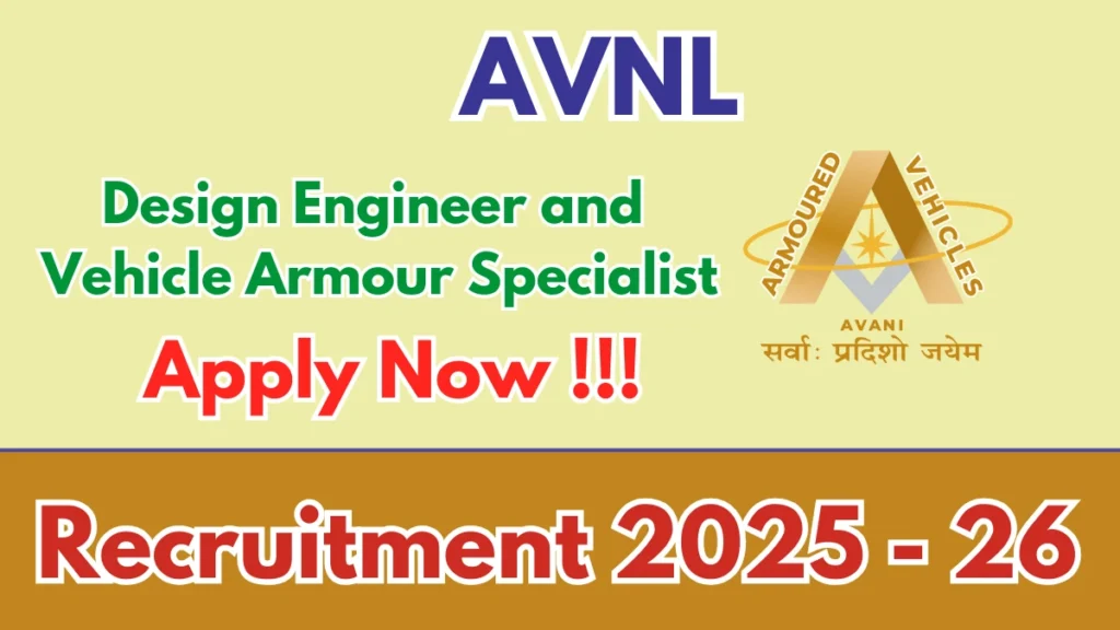 Armoured Vehicles Nigam (AVNL) has released an official notification for the recruitment of 03 Design Engineer and Vehicle Armour Specialist Posts. Interested and eligible candidates can apply Offline through the official AVNL website. The last date to submit the application form is 26-01-2026. In this article, you’ll find the AVNL Design Engineer and Vehicle Armour Specialist Posts recruitment details, including eligibility criteria, age limit, salary structure, selection process, application steps, and direct links to the official notification and Offline application form.
