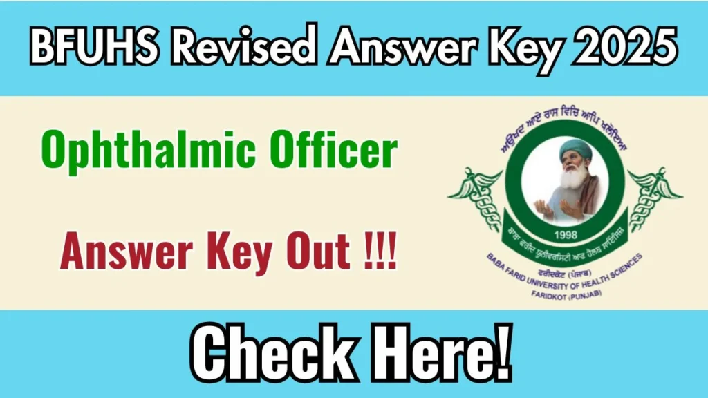 The Baba Farid University of Health Sciences (BFUHS) has released the Ophthalmic Officer Revised Answer Key 2025. Candidates who appeared for the Ophthalmic Officer examination held on 18/12/2025 can now check and download the revised answer key from the official website bfuhs.ggsmch.org.