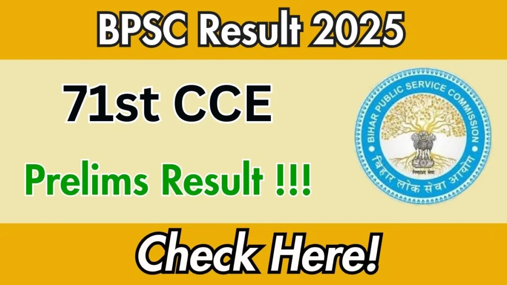 BPSC 71st CCE Prelims Result 2025 will be released soon. The Bihar Public Service Commission (BPSC) is expected to officially declare the BPSC Result 2025 for the 71st Combined Competitive Examination (CCE) in November 2025. Candidates who appeared for the exam held on 13th September 2025 will be able to check their results online. To view their qualifying status, candidates will need to enter their roll number and date of birth on the official website – bpsc.bihar.gov.in.
