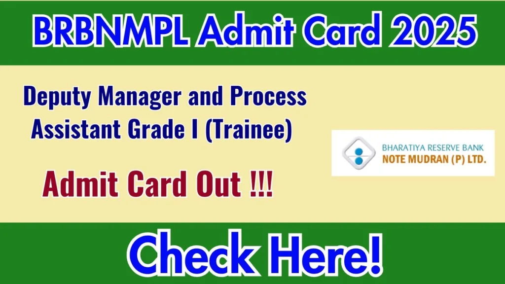 Download BRBNMPL Deputy Manager and Process Assistant Grade I (Trainee) Admit Card 2025 now! Get direct link, step-by-step process, and important exam details. Visit brbnmpl.co.in to download.