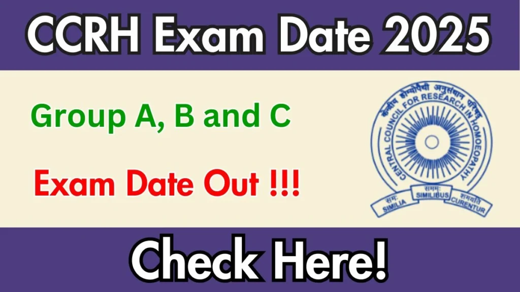 CCRH Exam Date 2025: The Central Council for Research in Homoeopathy (CCRH) has officially released the exam date for the Group A, B and C recruitment. Candidates who have applied for the Group A, B and C posts can check the complete exam schedule below. The examination is scheduled to be held on 15th to 18th December 2025. All eligible candidates are advised to download their admit cards and prepare accordingly.