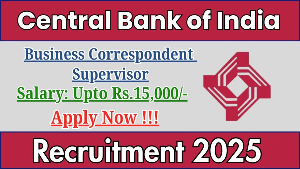 Central Bank of India has released an official notification for the recruitment of 03 Business Correspondent Supervisor Posts. Interested and eligible candidates can apply Offline through the official Central Bank of India website. The last date to submit the application form is 20-12-2025. In this article, you’ll find the Central Bank of India Business Correspondent Supervisor Posts recruitment details, including eligibility criteria, age limit, salary structure, selection process, application steps, and direct links to the official notification and Offline application form.