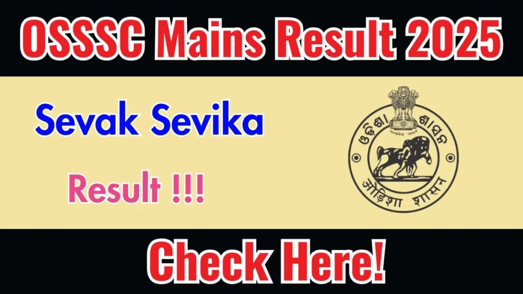 In December 2025, the OSSSC Sevak Sevika Result 2025 will be released on osssc.gov.in. The OSSSC will conduct the Sevak Sevika examination at various centers across the state. Once the results are declared, candidates will be able to check and download their OSSSC Sevak Sevika Result 2025 by visiting the official website osssc.gov.in.