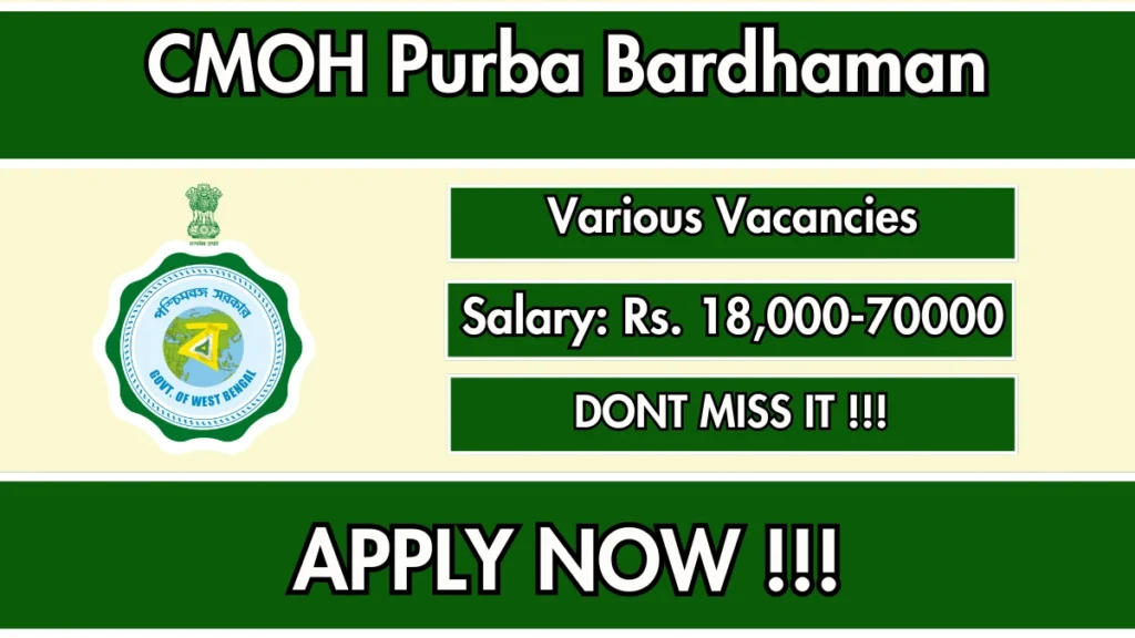 Chief Medical Officer of Health Purba Bardhaman (CMOH Purba Bardhaman) has released an official notification for the recruitment of 15 GDMO, Block Accounts Manager and More Posts. Interested and eligible candidates can apply Online through the official CMOH Purba Bardhaman website. The last date to submit the application form is 13-01-2026. In this article, you’ll find the CMOH Purba Bardhaman GDMO, Block Accounts Manager and More Posts recruitment details, including eligibility criteria, age limit, salary structure, selection process, application steps, and direct links to the official notification and Online application form.
