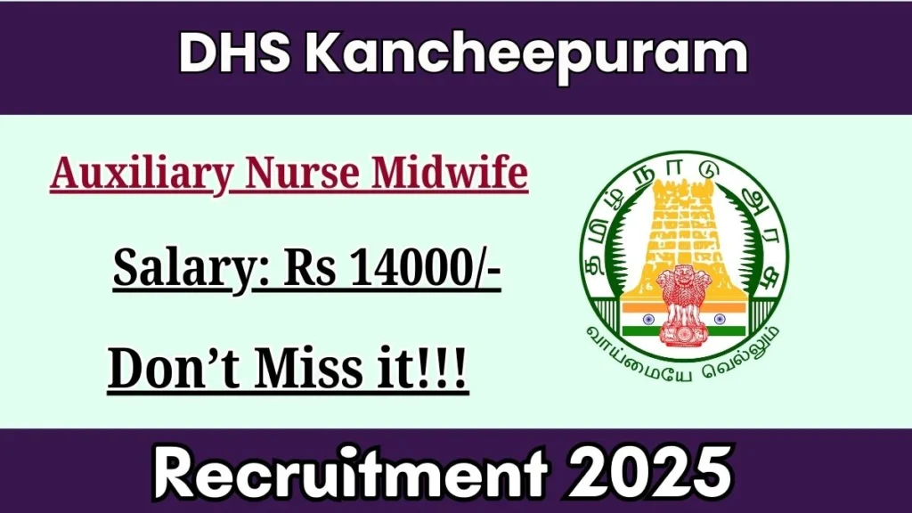District Health Society Kancheepuram (DHS Kancheepuram) has released an official notification for the recruitment of 06 Auxiliary Nurse Midwife Posts. Interested and eligible candidates can apply Offline through the official DHS Kancheepuram website. The last date to submit the application form is 25-12-2025. In this article, you’ll find the DHS Kancheepuram Auxiliary Nurse Midwife Posts recruitment details, including eligibility criteria, age limit, salary structure, selection process, application steps, and direct links to the official notification and Offline application form.