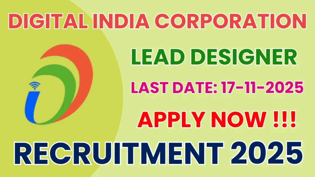 Digital India Corporation has released an official notification for the recruitment of 01 Lead Designer Posts. Interested and eligible candidates can apply Online through the official Digital India Corporation website. The last date to submit the application form is 17-11-2025. In this article, you’ll find the Digital India Corporation Lead Designer Posts recruitment details, including eligibility criteria, age limit, salary structure, selection process, application steps, and direct links to the official notification and Online application form.