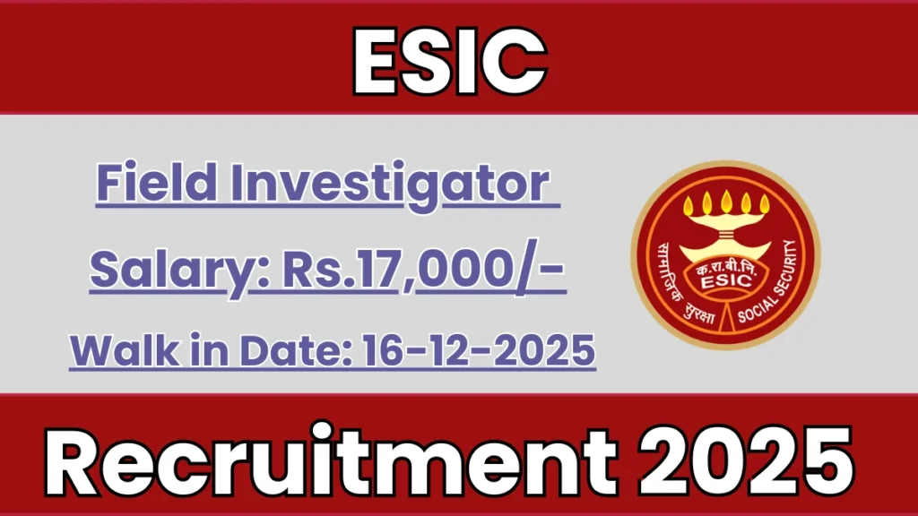 ESIC Field Investigator Recruitment 2025 Vacancy Details