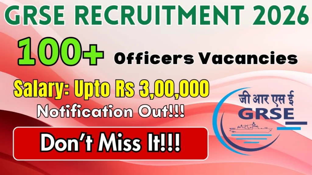GRSE Recruitment 2026 – Apply Online for 107 Assistant Manager, Junior Manager and Other Posts Leave a Comment / Latest Jobs / By admin Spread the love{title}{description}🗓️ Published: {date} 👉 Official Link: {url}