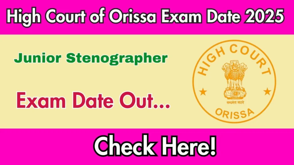 The High Court of Orissa has announced the Exam Date 2025 for the post of Junior Stenographer. Candidates can check the High Court of Orissa Exam Date 2025 notification on the official website – orissahighcourt.nic.in. The examination is scheduled for November 2, 2025. Further details about the High Court of Orissa Exam Date 2025 can be obtained from our website. Download the High Court of Orissa Exam Date 2025 from the provided website.