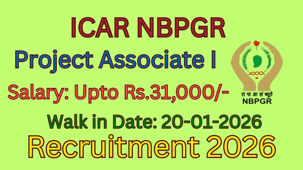 ICAR NBPGR Project Associate I Recruitment 2026 – Walk in