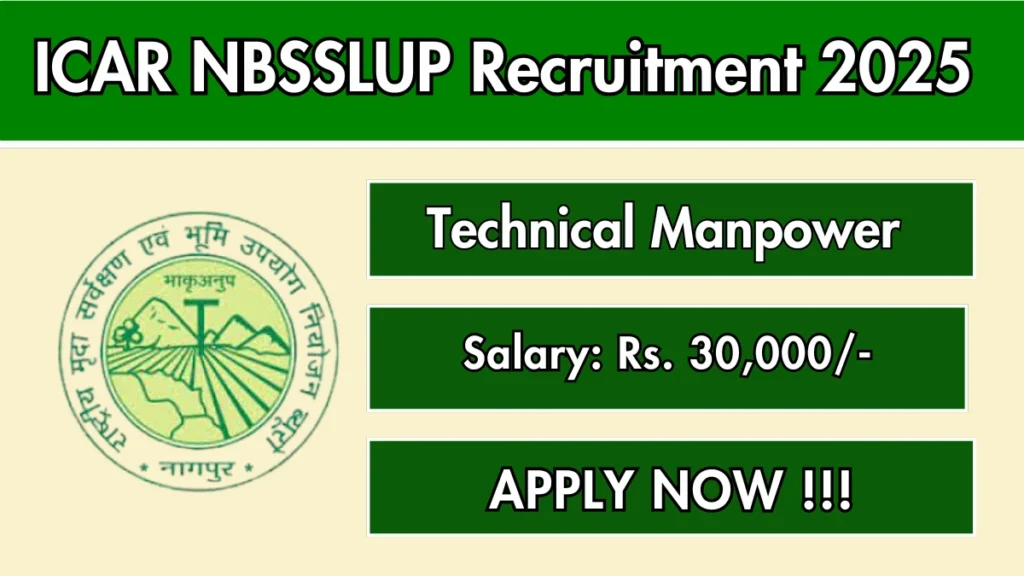 ICAR-NBSS&LUP Technical Manpower (YP-I) Recruitment 2025 Vacancy Details