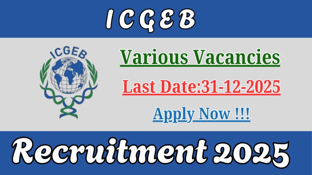 International Centre for Genetic Engineering and Biotechnology (ICGEB) has released an official notification for the recruitment of 04 Research Associate I, Project Research Scientist and More Posts. Interested and eligible candidates can apply Offline through the official ICGEB website. The last date to submit the application form is 31-12-2025. In this article, you’ll find the ICGEB Research Associate I, Project Research Scientist and More Posts recruitment details, including eligibility criteria, age limit, salary structure, selection process, application steps, and direct links to the official notification and Offline application form.