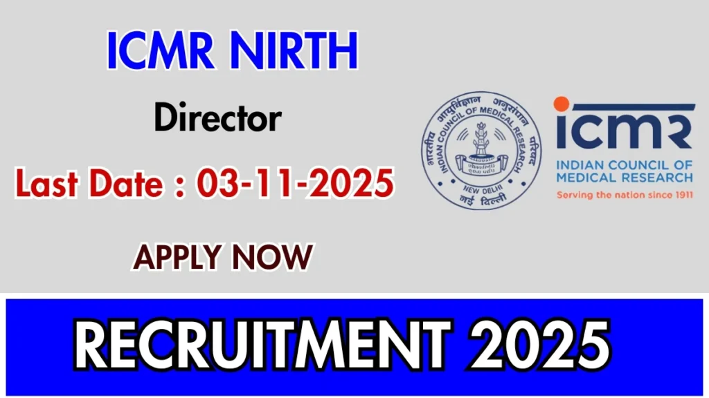 National Institute for Research in Tribal Health, Jabalpur (ICMR NIRTH)  has released an official notification for the recruitment of Director Posts. Interested and eligible candidates can apply Online through the official ICMR NIRTH website. The last date to submit the application form is 03-11-2025. In this article, you’ll find the ICMR NIRTH Director Posts recruitment details, including eligibility criteria, age limit, salary structure, selection process, application steps, and direct links to the official notification and Online application form.