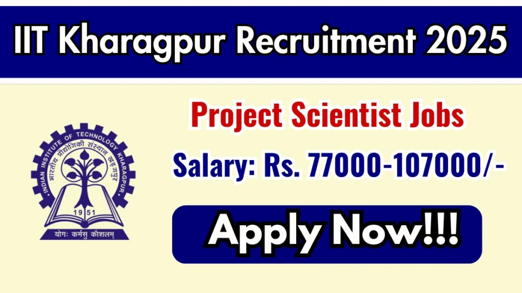 Indian Institute of Technology Kharagpur (IIT Kharagpur) has released an official notification for the recruitment of 01 Project Scientist Posts. Interested and eligible candidates can apply Online through the official IIT Kharagpur website. The last date to submit the application form is 14-12-2025. In this article, you’ll find the IIT Kharagpur Project Scientist Posts recruitment details, including eligibility criteria, age limit, salary structure, selection process, application steps, and direct links to the official notification and Online application form.