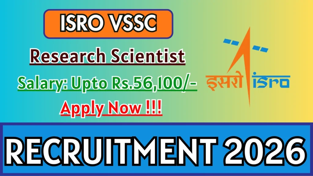 Vikram Sarabhai Space Centre (ISRO VSSC) has released an official notification for the recruitment of 02 Research Scientist Posts. Interested and eligible candidates can apply Online through the official ISRO VSSC website. The last date to submit the application form is 12-01-2026. In this article, you’ll find the ISRO VSSC Research Scientist Posts recruitment details, including eligibility criteria, age limit, salary structure, selection process, application steps, and direct links to the official notification and Online application form.