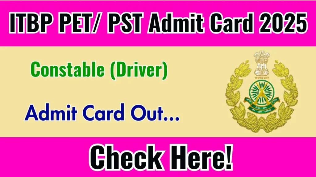 ITBP Constable (Driver) PET/ PST Admit Card 2025 OUT Download Hall Ticket at recruitment.itbpolice.nic.in