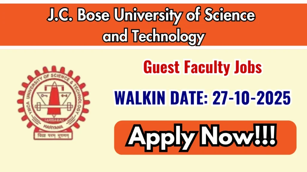 Name of the Post: J.C. Bose University of Science and Technology Guest Faculty 2025 Walk in