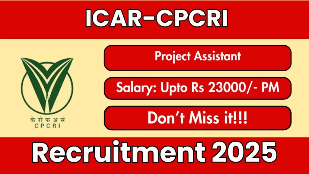 ICAR CPCRI Project Assistant Recruitment 2025 โ Walk in Read More ยป