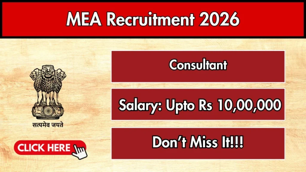 Ministry of External Affairs (MEA) has released an official notification for the recruitment of 10 Consultant Posts. Interested and eligible candidates can apply Offline through the official MEA website. The last date to submit the application form is 16-01-2026. In this article, you’ll find the MEA Consultant Posts recruitment details, including eligibility criteria, age limit, salary structure, selection process, application steps, and direct links to the official notification and Offline application form.
