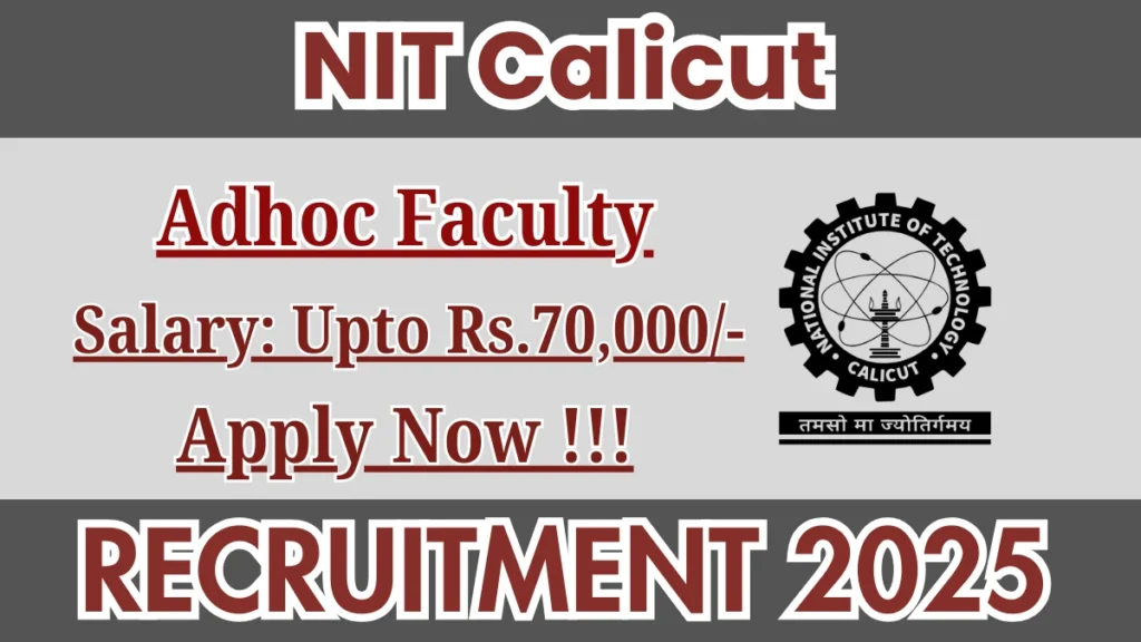 Tags: NIT Calicut Recruitment 2025, NIT Calicut Jobs 2025, NIT Calicut Job Openings, NIT Calicut Job Vacancy, NIT Calicut Careers, NIT Calicut Fresher Jobs 2025, Job Openings in NIT Calicut, NIT Calicut Sarkari Adhoc Faculty Recruitment 2025, NIT Calicut Adhoc Faculty Jobs 2025, NIT Calicut Adhoc Faculty Job Vacancy, NIT Calicut Adhoc Faculty Job Openings, M.Phil/Ph.D Jobs, Kerala jobs, Kozhikude jobs, Kochi jobs, Kannur jobs, Kollam jobs, Kottayam jobs, Teaching Recruitment