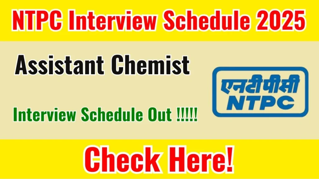 NTPC Assistant Chemist Interview Schedule 2025 is officially notified.