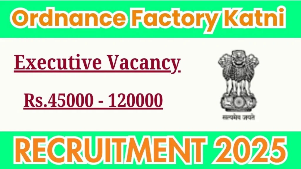 Ordnance Factory Katni  has released an official notification for the recruitment of 2 Executive, Assistant Executive Posts. Interested and eligible candidates can apply Offline through the official Ordnance Factory Katni website. The last date to submit the application form is 15-11-2025. In this article, you’ll find the Ordnance Factory Katni Executive, Assistant Executive Posts recruitment details, including eligibility criteria, age limit, salary structure, selection process, application steps, and direct links to the official notification and Offline application form.