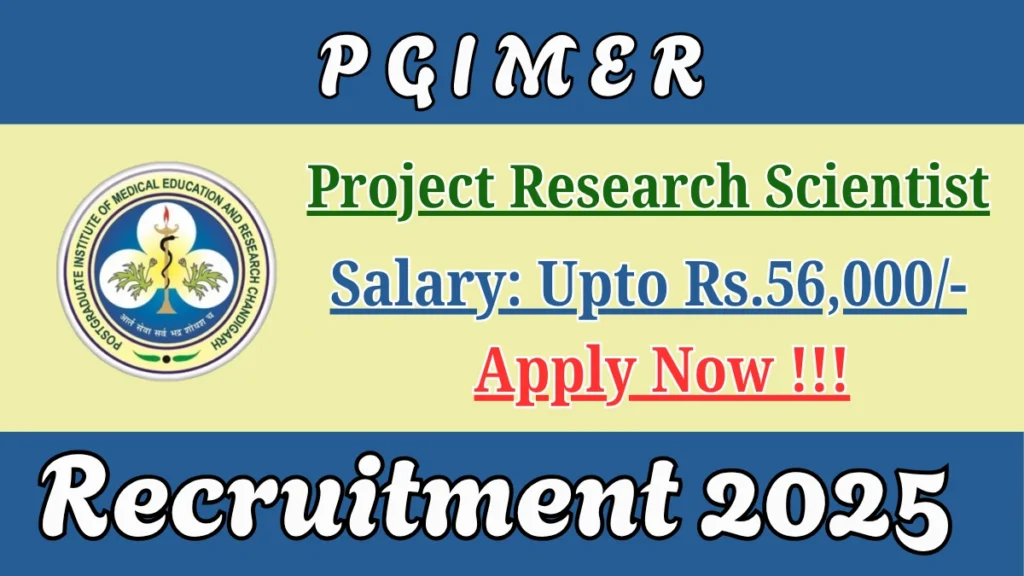Postgraduate Institute of Medical Education and Research (PGIMER) has released an official notification for the recruitment of 01 Project Research Scientist Posts. Interested and eligible candidates can apply Offline through the official PGIMER website. The last date to submit the application form is 24-11-2025. In this article, you’ll find the PGIMER Project Research Scientist Posts recruitment details, including eligibility criteria, age limit, salary structure, selection process, application steps, and direct links to the official notification and Offline application form.