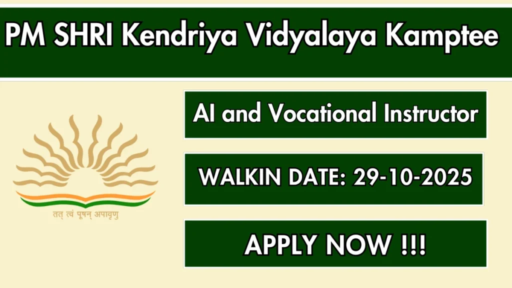 PM SHRI Kendriya Vidyalaya Kamptee Recruitment 2025 – Walk in for AI and Vocational Instructor Posts Leave a Comment / Latest Jobs / By admin Spread the love{title}{description}🗓️ Published: {date} 👉 Official Link: {url}