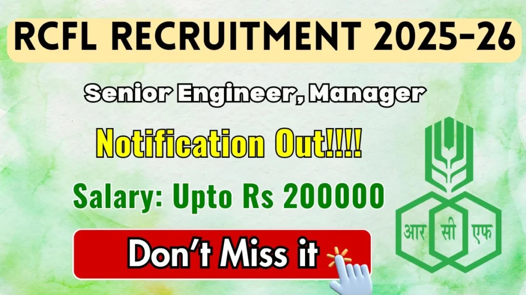 Rashtriya Chemicals and Fertilizers (RCFL) has released an official notification for the recruitment of 10 Senior Engineer, Manager Posts. Interested and eligible candidates can apply Online through the official RCFL website. The last date to submit the application form is 07-01-2026. In this article, you’ll find the RCFL Senior Engineer, Manager Posts recruitment details, including eligibility criteria, age limit, salary structure, selection process, application steps, and direct links to the official notification and Online application form.