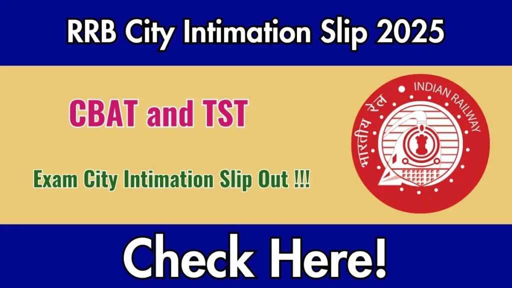 RRB NTPC CBAT and TST Exam City Intimation Slip 2025 Out – Download Link Here Leave a Comment / Latest Jobs / By admin Spread the love{title}{description}🗓️ Published: {date} 👉 Official Link: {url}