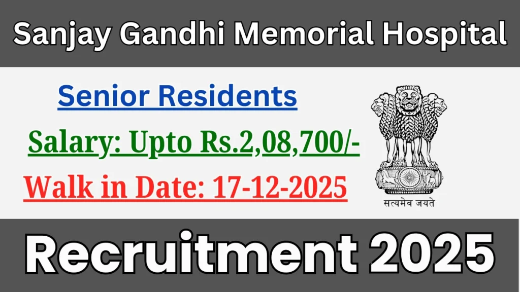 Sanjay Gandhi Memorial Hospital Recruitment 2025 for 39 posts of Senior Residents. Candidates with MBBS, Diploma, DNB Can attend the walkin. The Walk-in on 17-12-2025. For detailed information please visit Sanjay Gandhi Memorial Hospital official website, health.delhi.gov.in.