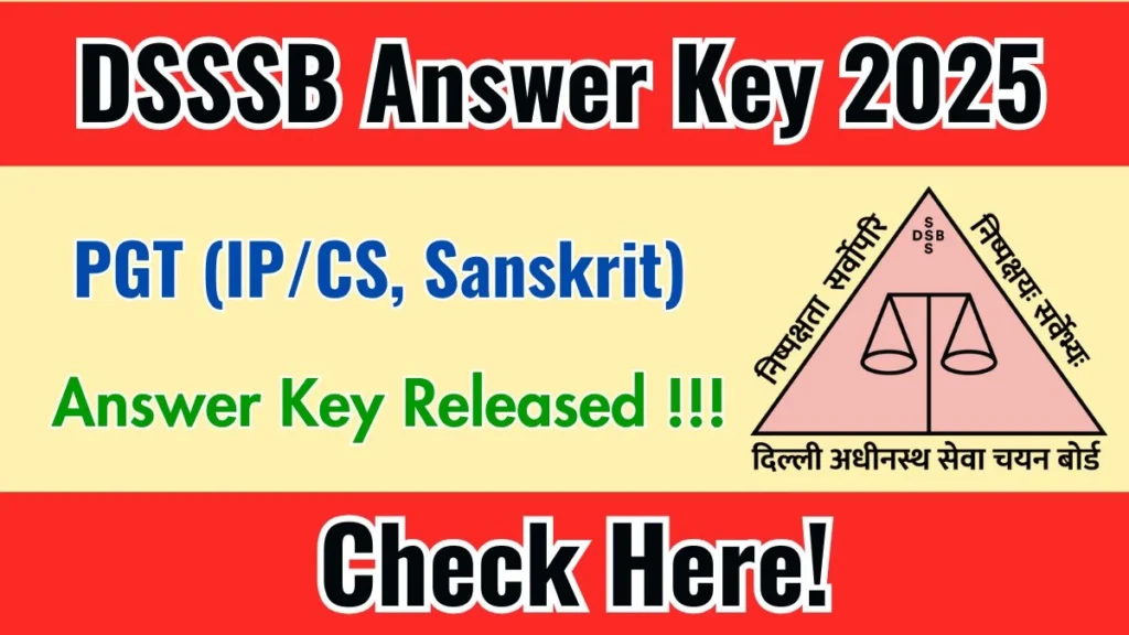 DSSSB PGT (IP/CS, Sanskrit) Answer Key 2025 Out – Download at dsssb.delhi.gov.in