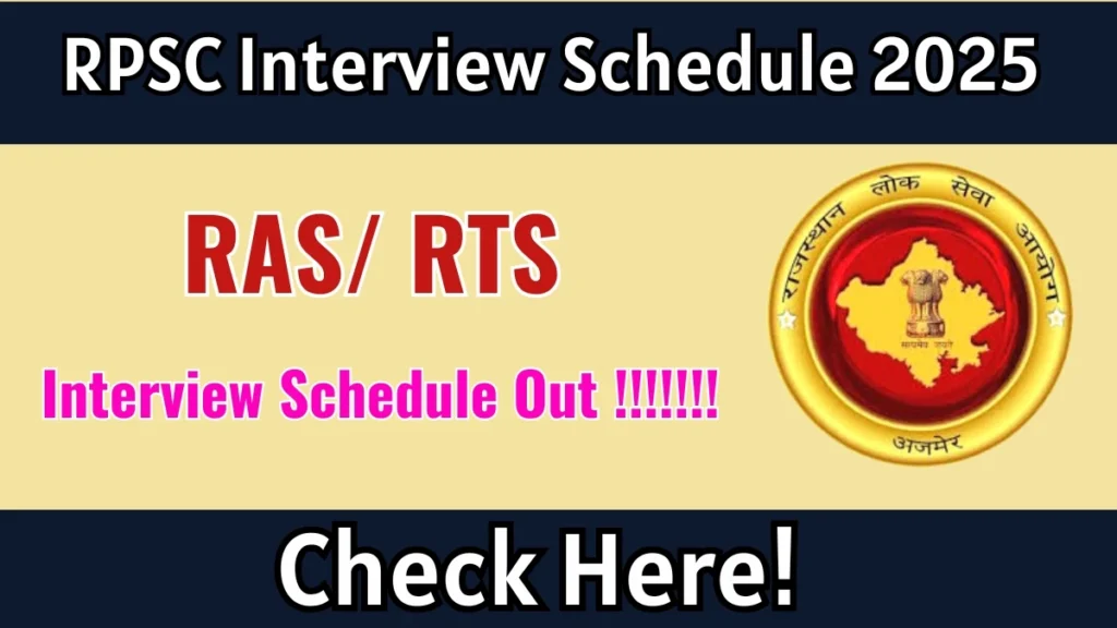 RPSC RAS/ RTS 1st Phase Interview Schedule 2025 is officially notified. The Interview Schedule for RPSC RAS/ RTS 1st Phase 2025 has been announced by Rajasthan Public Service Commission. Rajasthan Public Service Commission has regulated the RPSC RAS/ RTS 2025 in various centers across the country/state and the results were also released. Now the RPSC […]