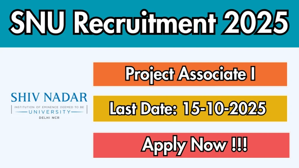 Shiv Nadar University (SNU)  has released an official notification for the recruitment of Project Associate I Posts. Interested and eligible candidates can apply Online through the official SNU website. The last date to submit the application form is 15-10-2025. In this article, you’ll find the SNU Project Associate I Posts recruitment details, including eligibility criteria, age limit, salary structure, selection process, application steps, and direct links to the official notification and Online application form.
