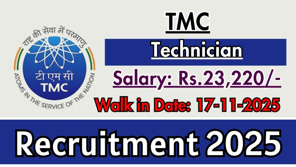 Tata Memorial Centre (TMC) Recruitment 2025 for 02 posts of Technician. Candidates with B.Sc, M.Sc, PG Diploma, DMLT, MLT Can attend the walkin. The Walk-in on 17-11-2025. For detailed information please visit TMC official website, tmc.gov.in.