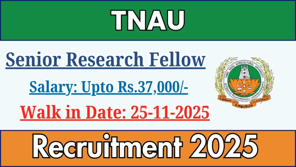Tamil Nadu Agricultural University (TNAU) Recruitment 2025 for 01 posts of Senior Research Fellow. Candidates with M.Sc Can attend the walkin. The Walk-in on 25-11-2025. For detailed information please visit TNAU official website, tnau.ac.in.