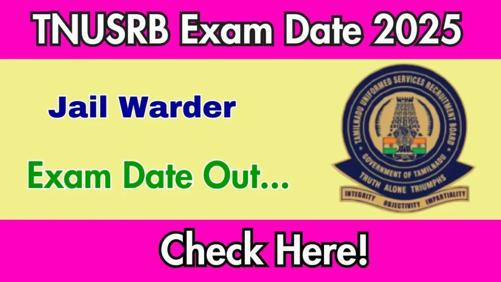 The Tamil Nadu Uniformed Services Recruitment Board has announced the Exam Date 2025 for the post of Jail Warder. Candidates can check the TNUSRB Exam Date 2025 notification on the official website – tnusrb.tn.gov.in. The examination is scheduled for 09 November 2025. Further details about the TNUSRB Exam Date 2025 can be obtained from our website. Download the TNUSRB Exam Date 2025 from the provided website.