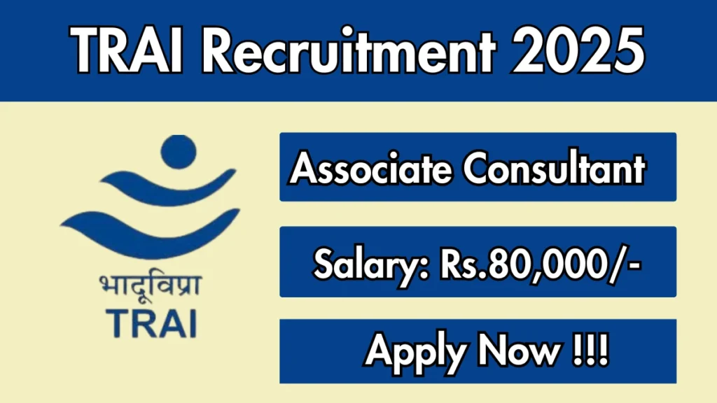 Telecom Regulatory Authority of India (TRAI) has released an official notification for the recruitment of 02 Associate Consultant Posts. Interested and eligible candidates can apply Online through the official TRAI website. The last date to submit the application form is 01-01-2026. In this article, you’ll find the TRAI Associate Consultant Posts recruitment details, including eligibility criteria, age limit, salary structure, selection process, application steps, and direct links to the official notification and Online application form.