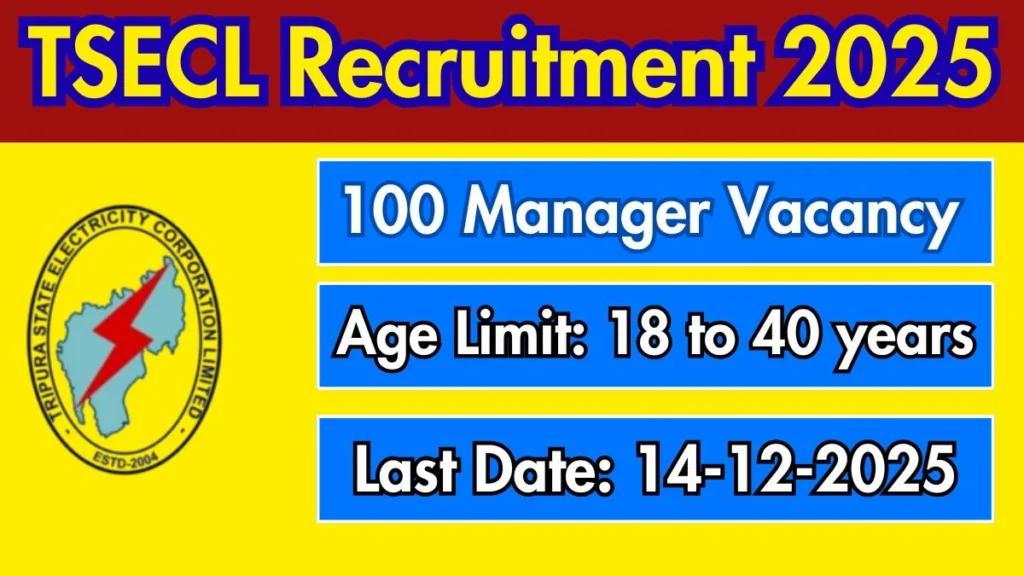 TSECL Manager Recruitment 2025 – Apply Offline for 100 Posts